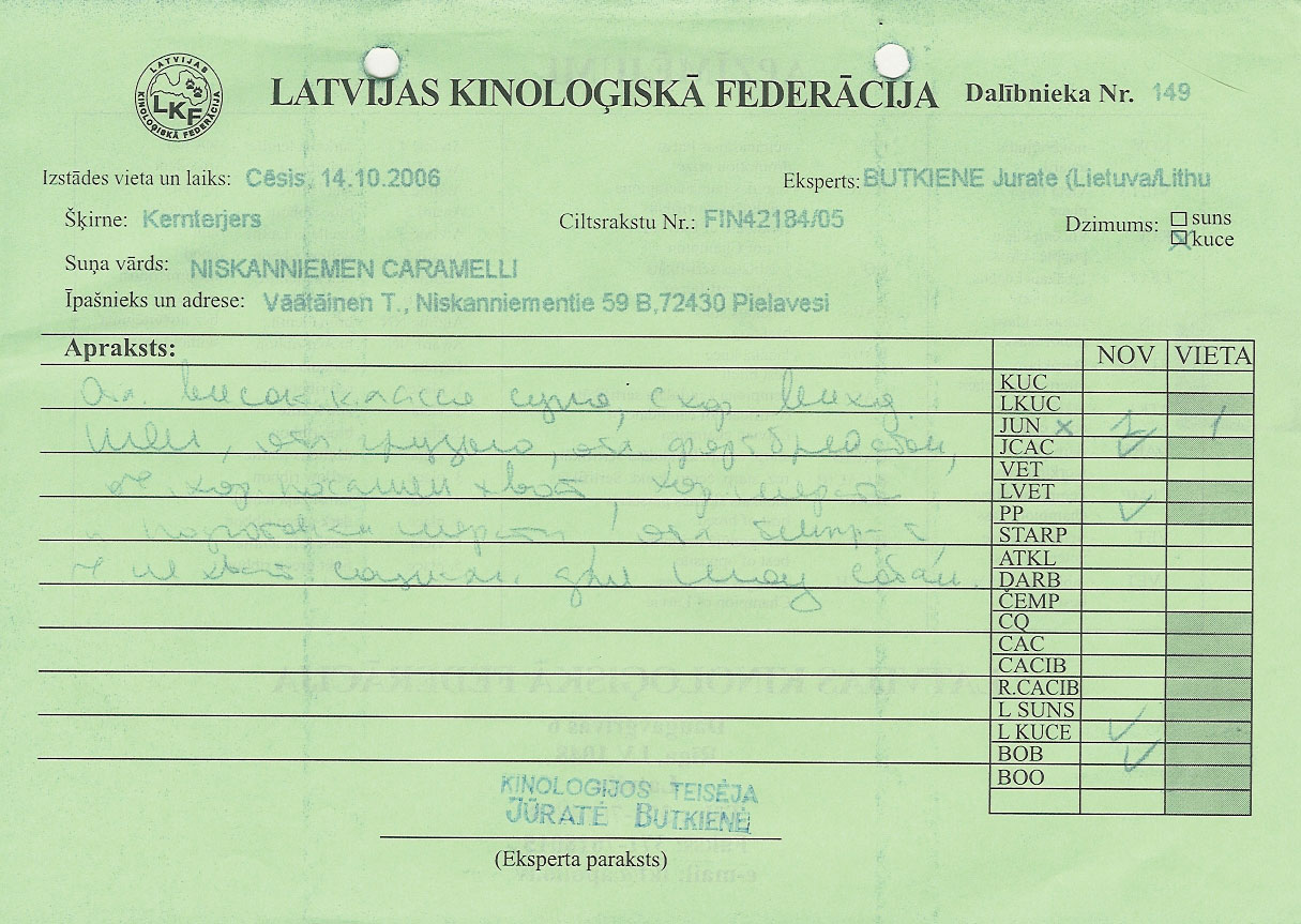 14.10.2006 | Latvia, Cesis, tuomari jurate Butkiene | JUN ERI1 KP JUNSERT PN1 ROP |
